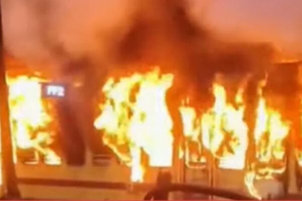 স্টেশনে দাঁড়িয়ে থাকা ট্রেনে ভয়াবহ অগ্নিকাণ্ড, দাউদাউ করে পুড়ল কামরা