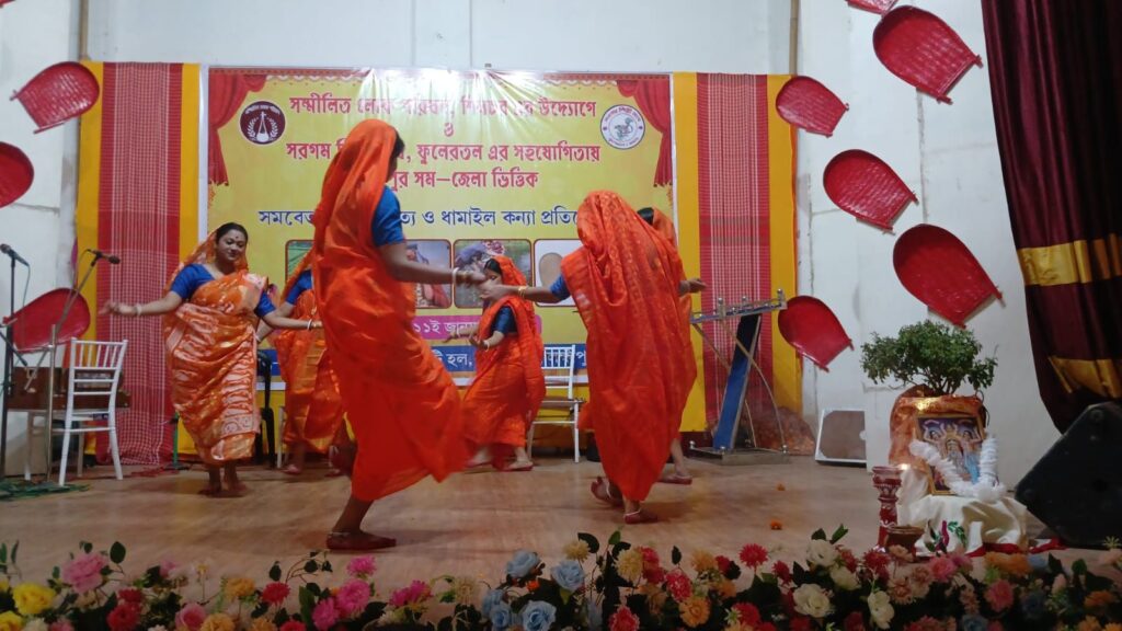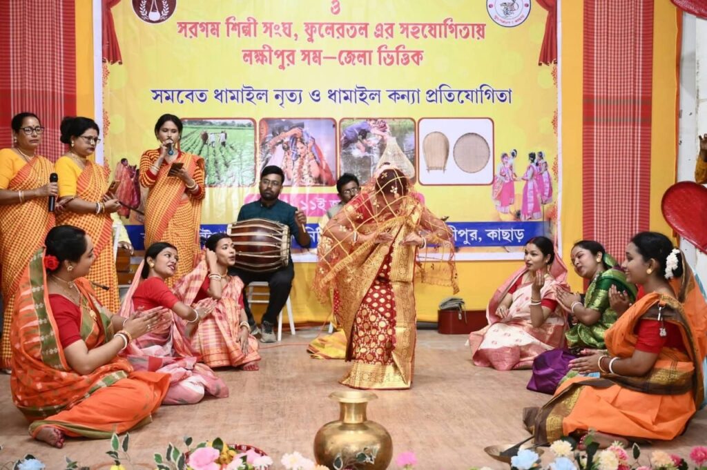 বরাক তরঙ্গ, ১১ জানুয়ারি : লক্ষীপুর সমজেলা ভিত্তিক সমবেত ধামাইল নৃত্য ও ধামাইল কন্যা প্রতিযোগিতা রবিবার ব্যাপক উৎসাহ ও উদ্দীপণার মধ্য দিয়ে সমাপ্ত হলো। বরাক উপত্যকার লোক সংস্কৃতি চর্চা বিষয়ক সংগঠন সম্মিলিত লোক পরিষদ শিলচর-র উদ্যোগে ও সরগম শিল্পী সংঘ ফুলেরতলের সহযোগিতায় ফুলেরতল মাল্টিপার্পাস হলে আয়োজিত ধামাইল উৎসবে মোট আটটি দল অংশগ্রহণ করে। তাছাড়াও পরিবেশিত হয় দু’টি প্রদর্শনী ধামাইল নৃত্য, পরিবেশনায় ছিলেন মিতালিজ গ্রুপ হাইলাকান্দি ও আয়োজক সম্মিলিত লোক পরিষদের শিল্পীরা। এছাড়াও সংস্থার সমবেত সঙ্গীত পরিবেশিত হয় এদিনের মঞ্চে।