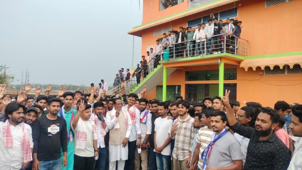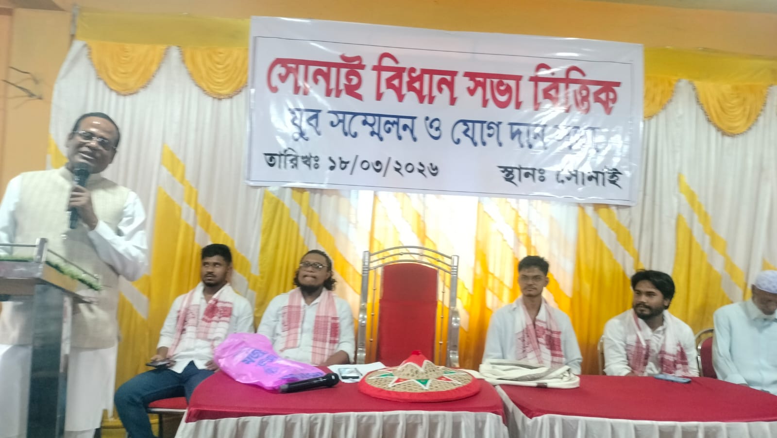 বরাক তরঙ্গ, ১৮ মার্চ : যুব কংগ্রেসের পর এবার বিভিন্ন দল ও সংগঠন থেকে হাজার খানেক যুবক অসম গণ পরিষদে যোগদান করেছেন। বুধবার দুপুরে সোনাই শহরের এক অনুষ্ঠান ভবনে আয়োজিত অনুষ্ঠানে বিধায়ক করিম উদ্দিন বড়ভূইয়া-র উপস্থিতিতে এই বৃহৎ যোগদান কর্মসূচি সম্পন্ন হয়। এদিন নবাগত যুবকদের দলে বরণ করে নেন করিম উদ্দিন বড়ভূইয়া ওরফে সাজু। যোগদানকারী যুবকেরা জানান, নিজেদের ভবিষ্যৎ সুনিশ্চিত করতে এবং উন্নয়নের স্বার্থে তারা সরকারপক্ষের সঙ্গে থেকে করিম উদ্দিন বড়ভূইয়ার পাশে থাকার সিদ্ধান্ত নিয়েছেন। পাশাপাশি সোনাইয়ে শান্তি-সম্প্রীতি ও উন্নয়নের ধারা বজায় রাখতে আসন্ন নির্বাচনে সক্রিয়ভাবে কাজ করার অঙ্গীকারও ব্যক্ত করেন তারা।