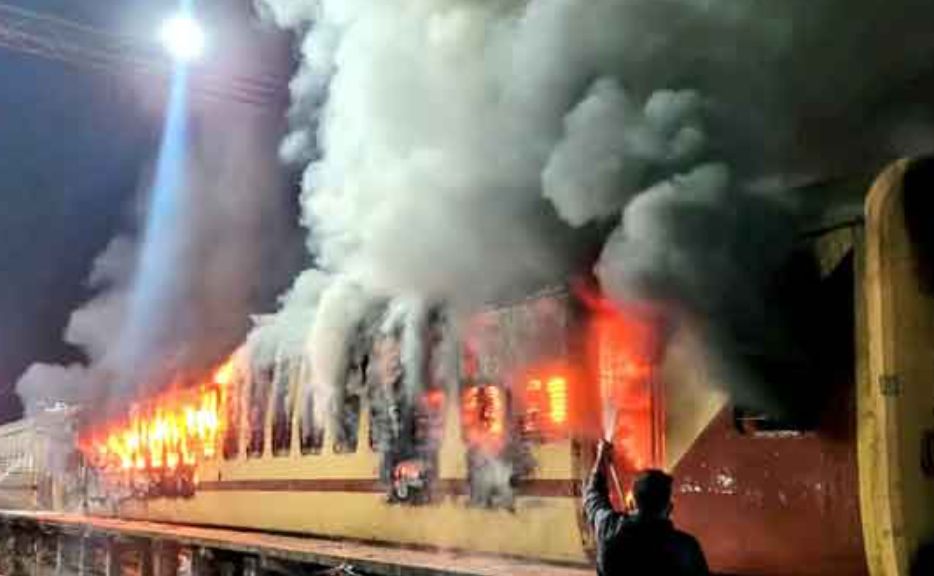 রেল ও পুলিশ সূত্রের খবর অনুযায়ী, ঘড়িতে তখন রাত পৌনে একটা। ট্রেনটি যখন ইয়েলামাঞ্চিলি স্টেশনে প্রবেশ করার প্রস্তুতি নিচ্ছিল, ঠিক সেই মুহূর্তেই বি–১ (B-1) এবং এম–২ (M-2) কামরা থেকে আগুনের স্ফুলিঙ্গ দেখতে পান যাত্রীরা। চোখের নিমেষে ধোঁয়ায় ভরে যায় কামরা দু’টি এবং দাউদাউ করে আগুন জ্বলতে শুরু করে। গভীর ঘুমে আচ্ছন্ন যাত্রীরা পোড়া গন্ধে সজাগ হয়ে দেখেন আগুনের লেলিহান শিখা তাদের গ্রাস করতে আসছে। প্রাণ বাঁচাতে যাত্রীরা আর্তচিৎকার শুরু করেন এবং ট্রেনের চেইন টেনে থামানোর চেষ্টা করা হয়।