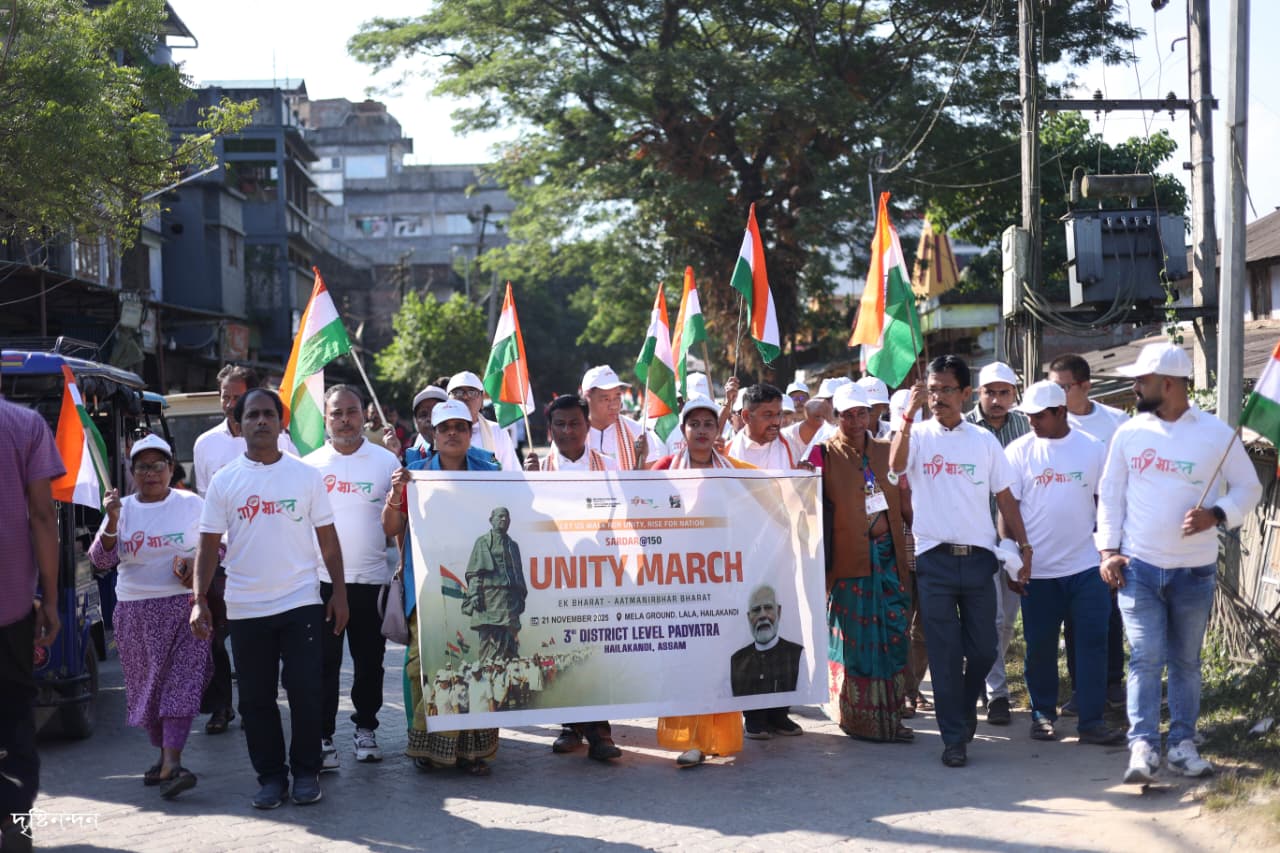 বরাক তরঙ্গ, ২১ নভেম্বর : সর্দার বল্লভভাই প্যাটেলের ১৫০ তম জন্মবার্ষিকী পালন উপলক্ষে হাইলাকান্দি জেলা প্রশাসনের উদ্যোগে শুক্রবার লালা শহরে ইউনিটি রান নামক এক পদযাত্রা বের করা হয়। সর্দার প্যাটেলের প্রতি শ্রদ্ধা জানাতে হাইলাকান্দি জেলার তৃতীয় ইউনিটি রান নামক পদযাত্রাটি লালা শহরের মেলার মাঠ থেকে শুক্রবার শুরু হয়। এরপর পেট্রোল পাম্প সংলগ্ন বাস টার্মিনাস হয়ে পদযাত্রাটি ফের মেলার মাঠে মিলিত হয়।